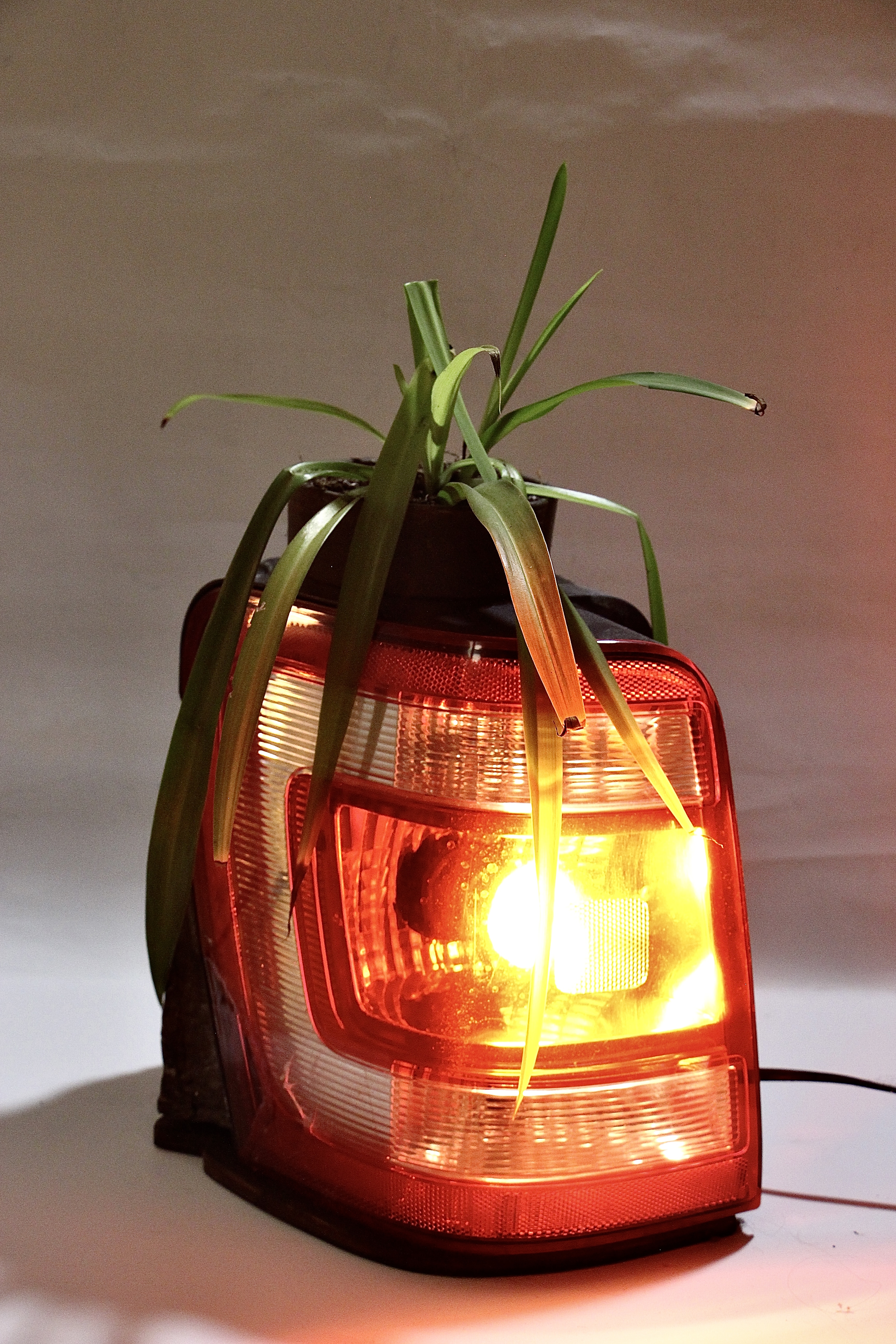 Tanker sua ben du pick up est sculpture luminaire construite suite à la découverte d’un phare, d’éléments electriques et d’un kilogramme d’argile dans les ordures montréalaises.